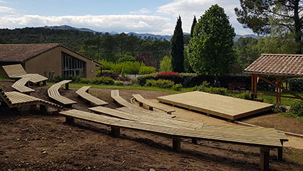 L’aménagement d’un théâtre de verdure à proximité de la salle des fêtes sera l’occasion de valoriser en bois construction des pins maritimes issus de la forêt communale.