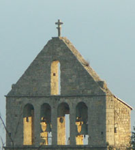 Le clocher, du type « clocher à peigne », très répandu dans tout le sud du Massif Central, a peut-être été écimé sur ordre de Louis XIV pour punir la paroisse d’Ailhon de sa participation à la révolte du Roure. Il est percé de quatre fenêtres pour quatre cloches, mais il ne lui en reste que deux : en effet, les habitants de Lentillères et de Fons décidèrent au XIXe siècle, de construire leur propre église et quittèrent la paroisse d’Ailhon… avec une cloche.