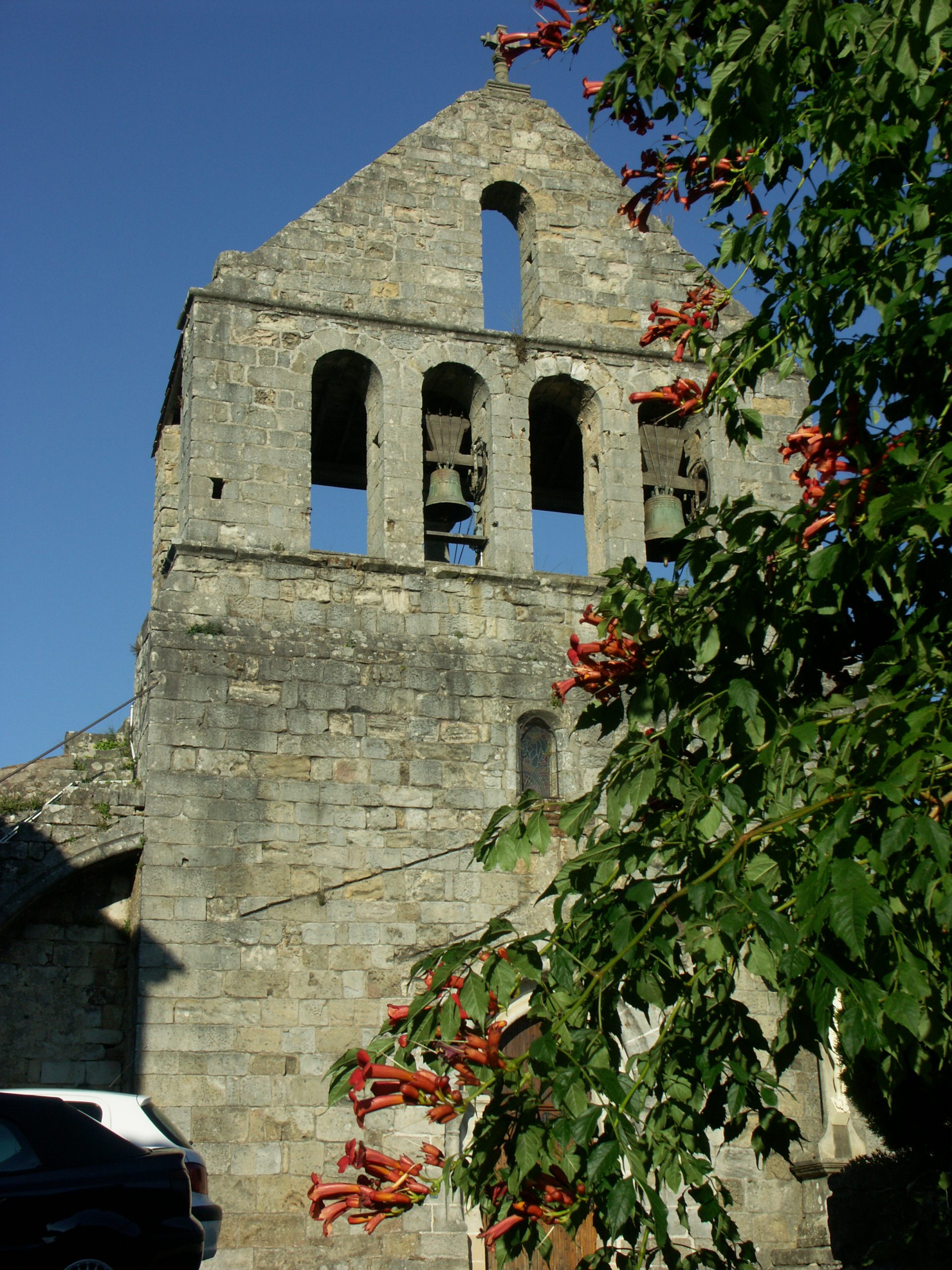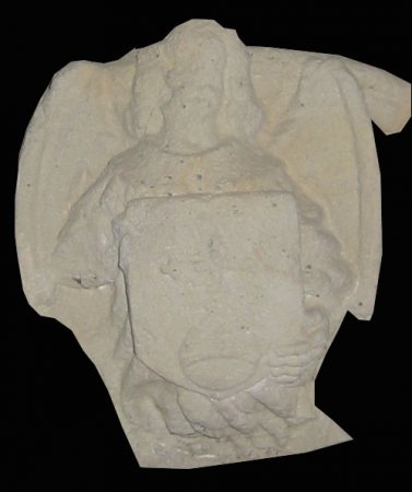 Dans le fond de l’église, à côté du mécanisme d’horlogerie maintenant inutilisé, est placé le couvercle du sarcophage de Jean de Roqua, abbé de l’abbaye cistercienne ardéchoise des Chambons au xve siècle : l’abbé est représenté par sa crosse abbatiale.