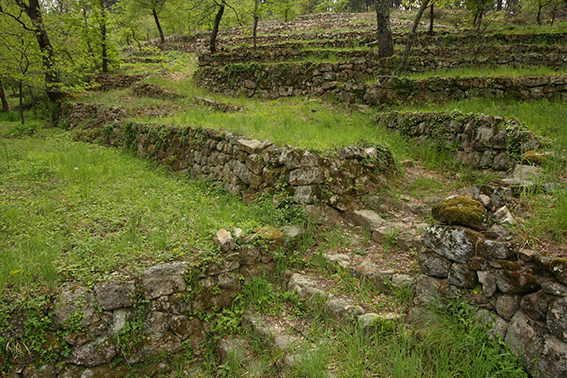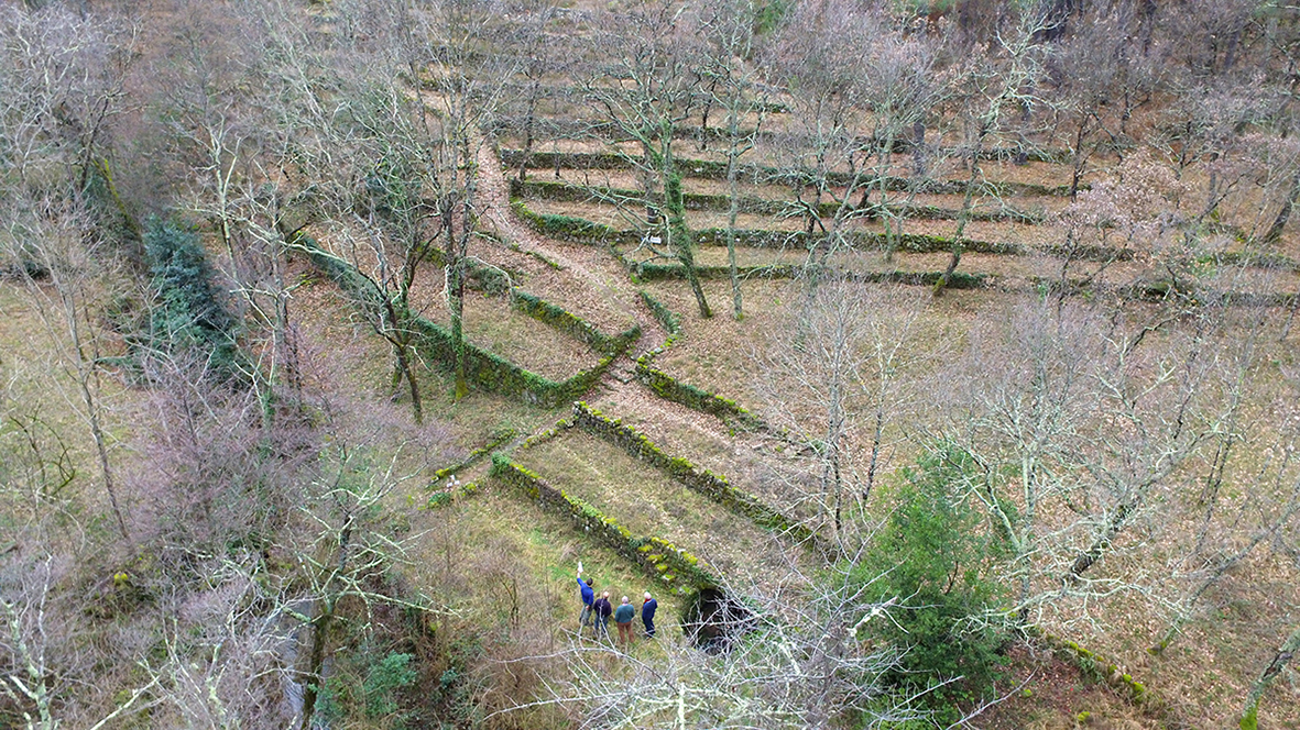 À proximité immédiate du hameau du chef-lieu de la commune d’Ailhon, un flanc de vallon est entièrement occupé de faysses qu’une série d’escaliers permet de descendre en ligne presque droite.